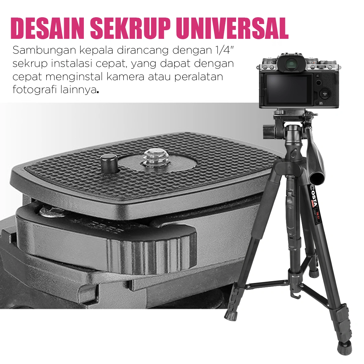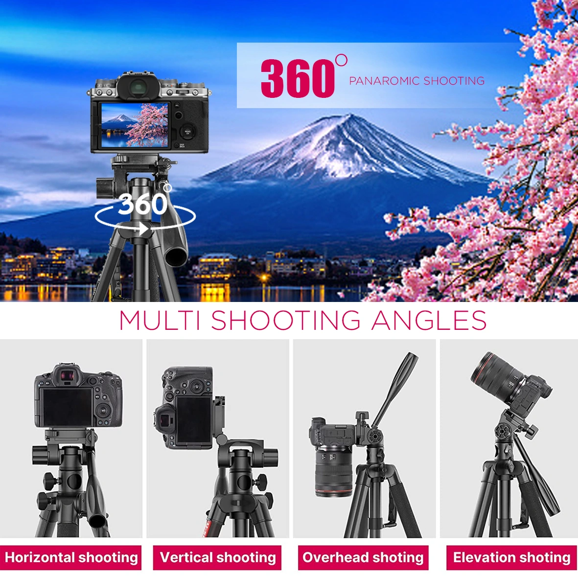 Designed for compatibility with various types of cameras and smartphones, providing high flexibility in use. Can be used as a tripod or monopod, providing additional flexibility for a variety of shooting needs, from studio use to outdoors.