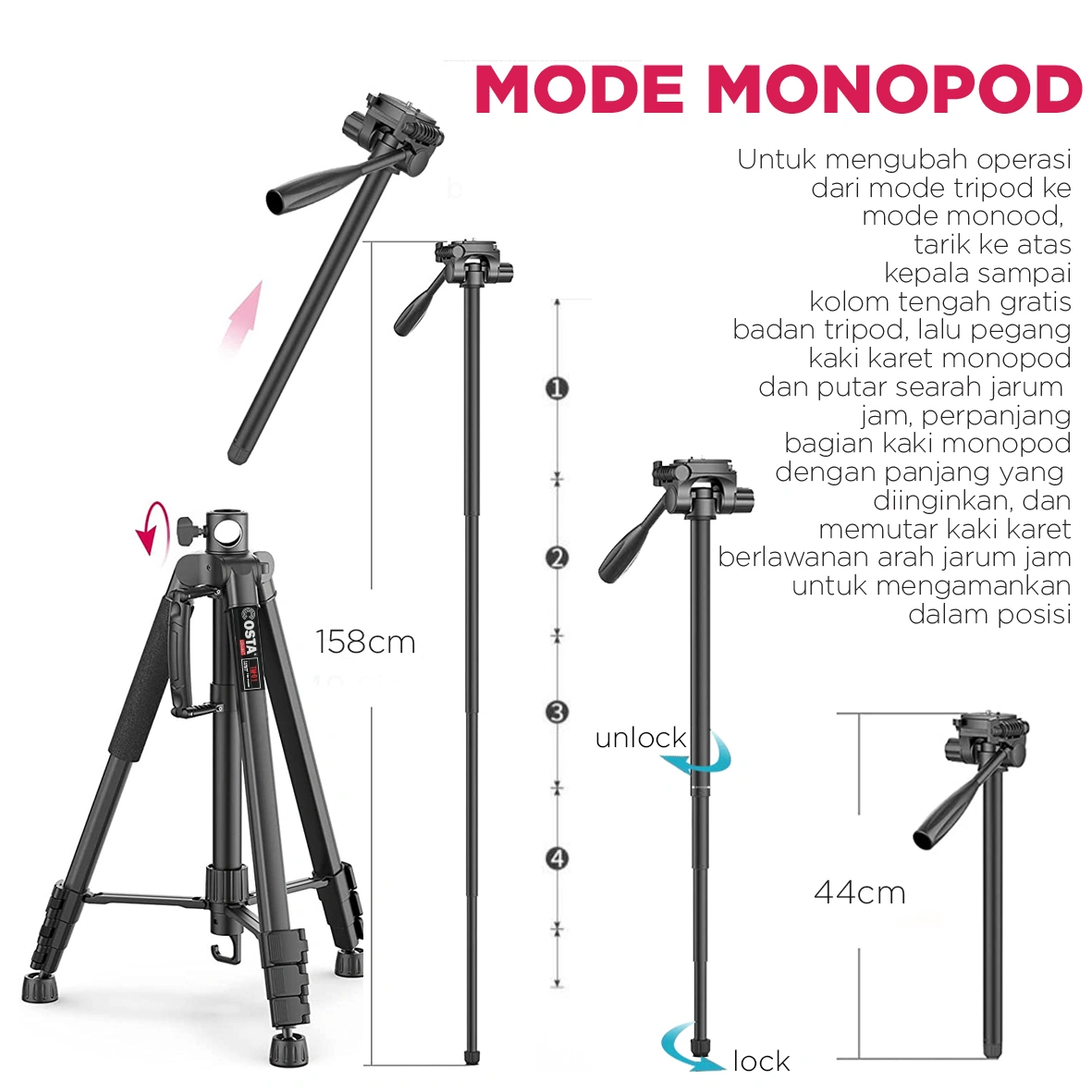 • Maximum Height (Monopod):1580mm