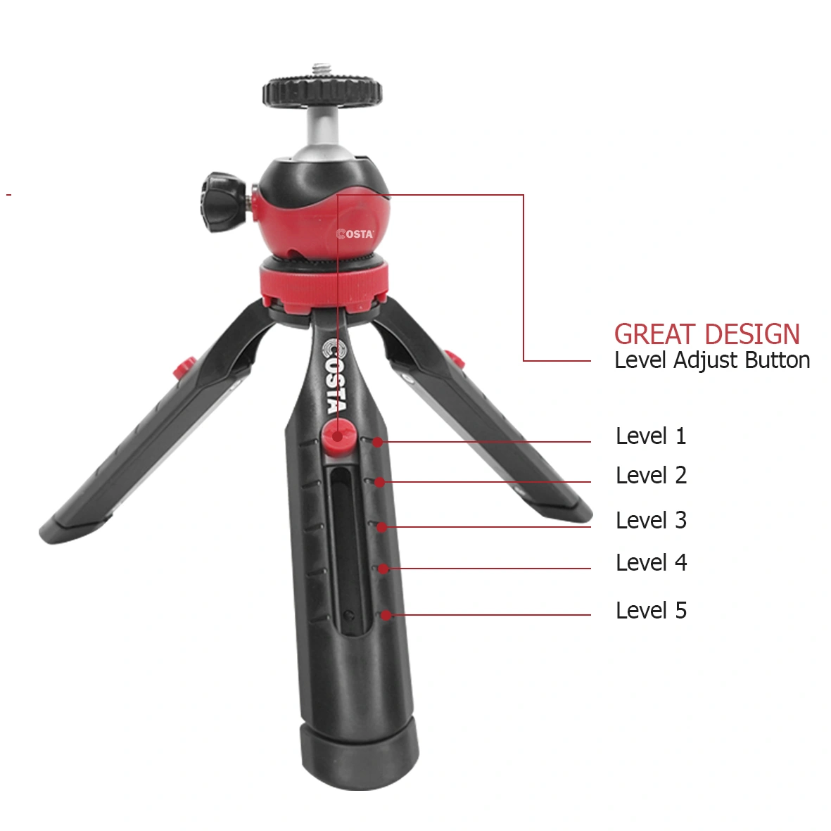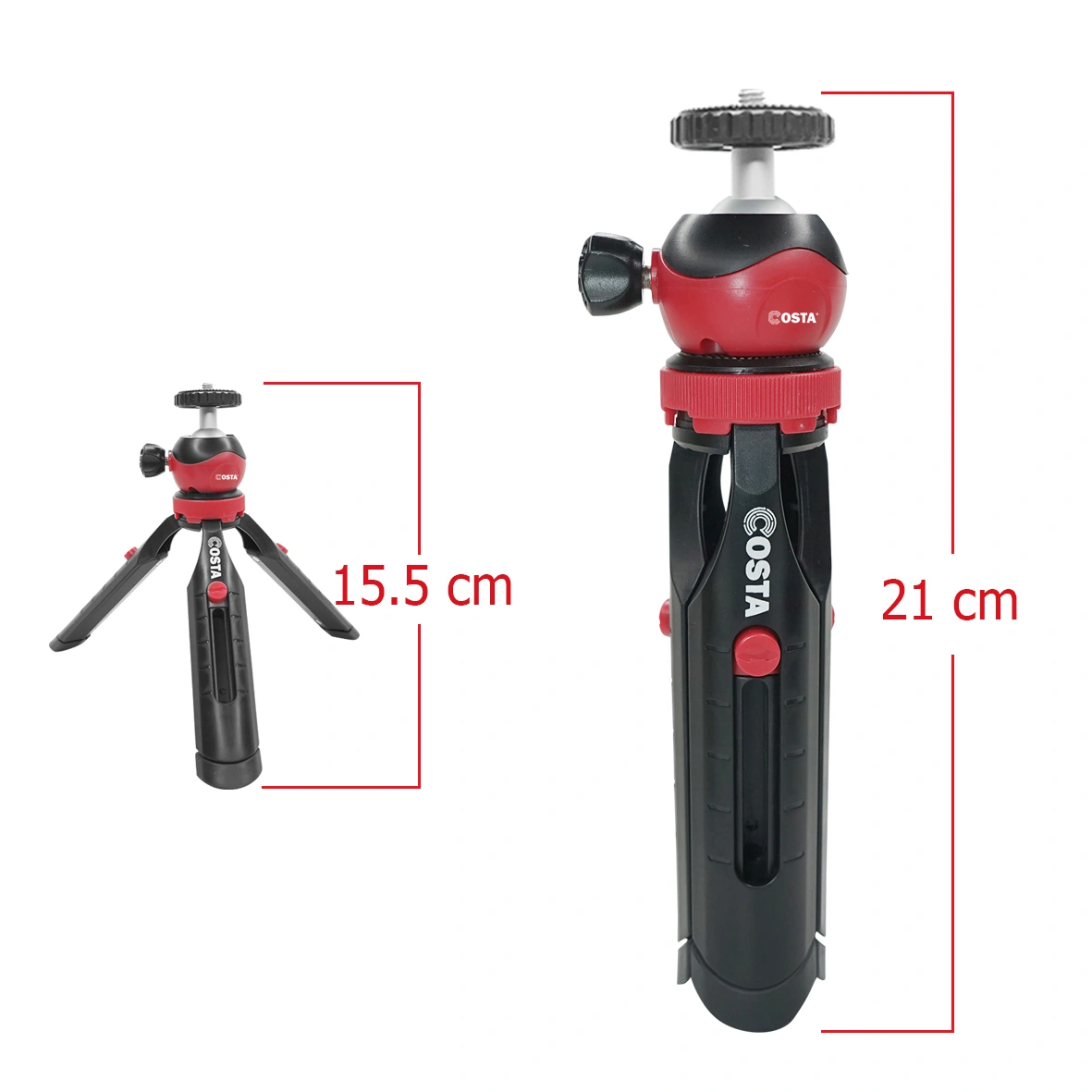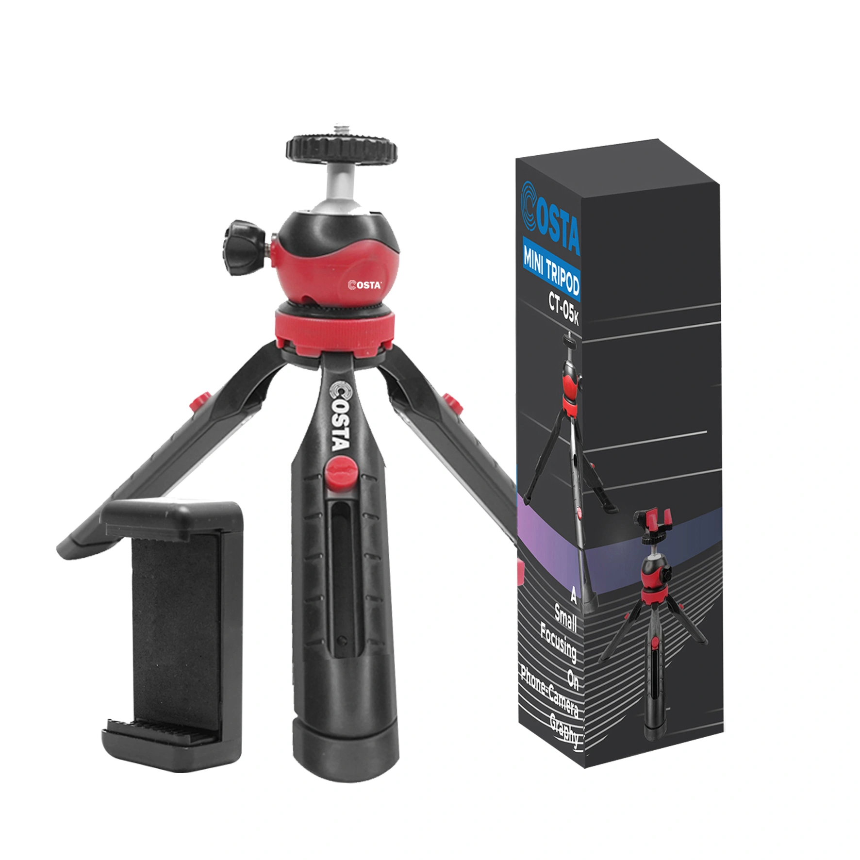 The COSTA CT-05K is a multifunctional mini tripod that combines portability and flexibility, specifically designed to meet the needs of photographers and videographers looking for light yet stable equipment. With its ability to support a wide range of devices from smartphones to action cameras and DSLRs, this tripod is the perfect choice for anyone who needs a practical and efficient solution for photography and videography activities.